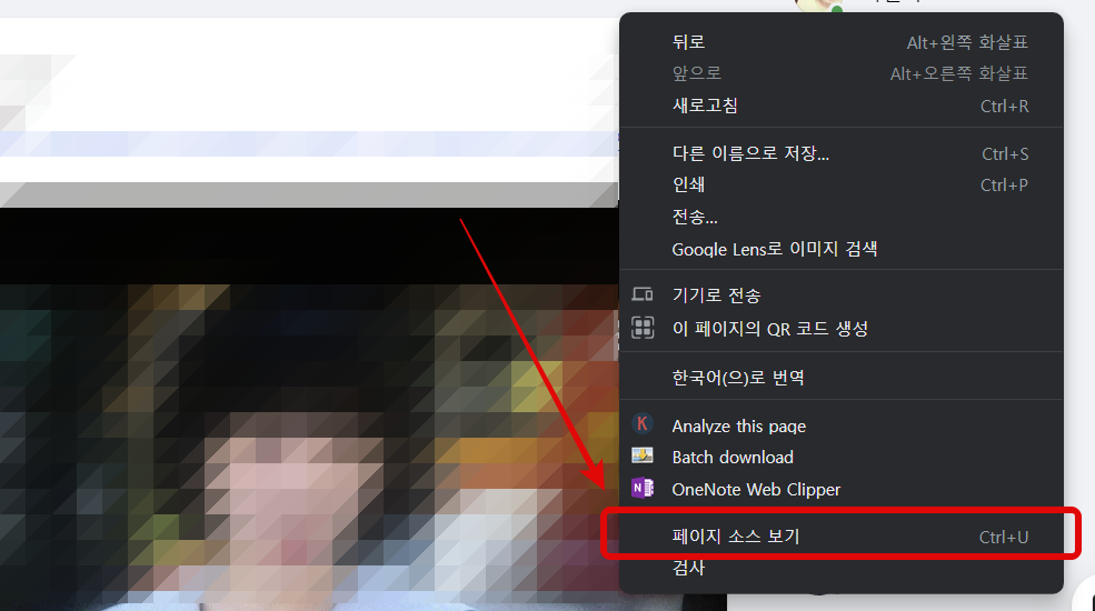 그다음에는 페이지 소스 화면에서 보이는 모든 소스코드를 드래그 선택한 뒤 복사하고 방문자 확인 사이트에 붙여 넣기를 해야 합니다.
