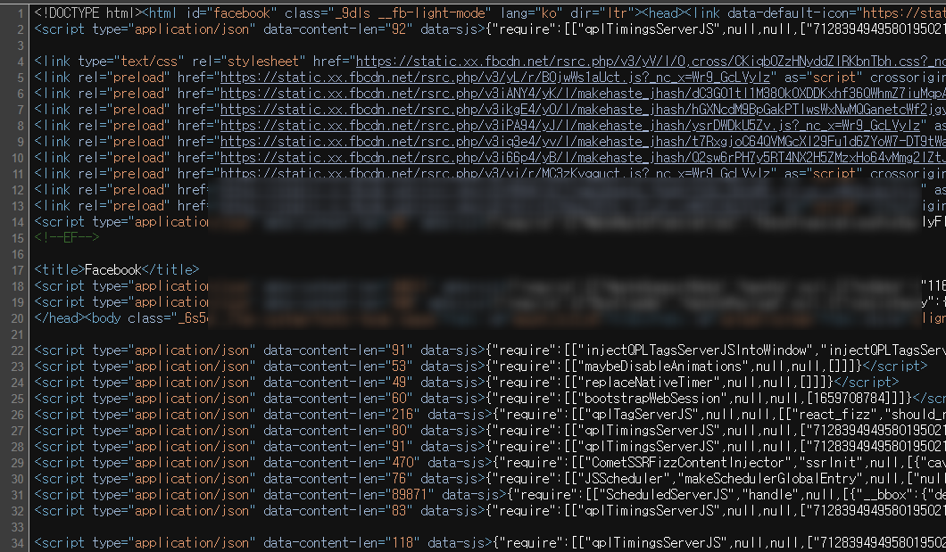 페이스북 소스코드를 복사하는 방법은 페이스북 화면에서 마우스 우클릭을 한 뒤 "페이지 소스 보기"를 선택하는 것입니다. 단축키로는 ctrl+u입니다.